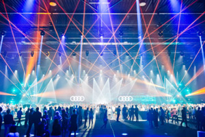 El nuevo Audi A6 fue presentado por un gran concesionario de coches en Alemania en 2011 y HB-Laser apoyó el lanzamiento de este coche con un espectáculo de láser y tecnología multimedia, incluyendo un sistema de sonido y u...